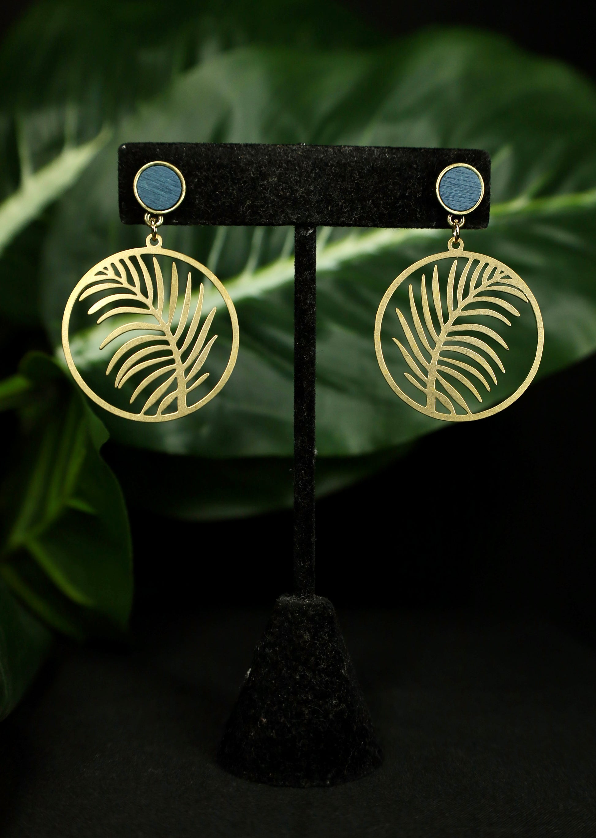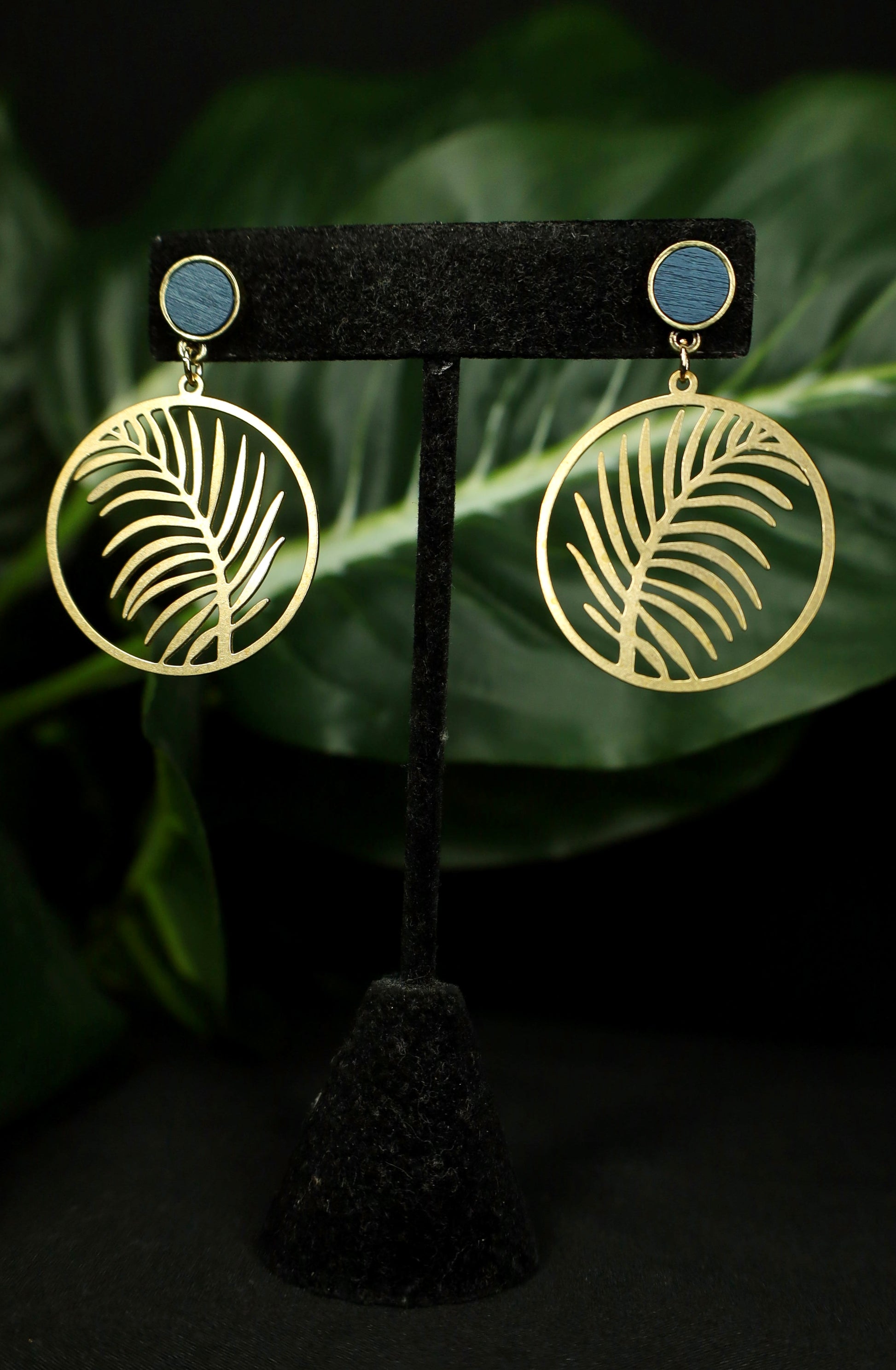 Gorgeous brass palm leaf pendants, laser cut for intense detail, plus gorgeous teal blue earring posts make for stunning earrings measuring 1.5" long! Plus, earring posts are stainless steel, hypoallergenic and nickel-free for your comfort.